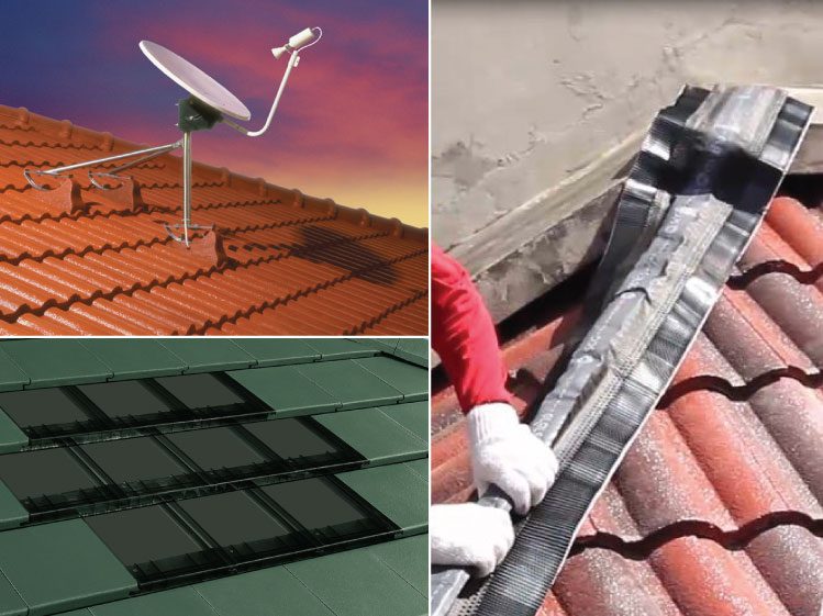 กระเบื้องหลังคาหลายรุ่นมีอุปกรณ์เสริมให้เลือกใช้ ไม่ว่าจะเป็น อุปกรณ์รับสัญญาณดาวเทียม อุปกรณ์บอกทิศลม กระเบื้องโปร่งแสงสำหรับ Sky light แผ่นปิดลอนกระเบื้องกันนก ระบบครอบหลังคาแบบแห้ง หรือ Drytech system (กันรั่วซึมได้ดีกว่าระบบครอบแบบปูนปั้น) ชุดอุปกรณ์ติดตั้งแผงโซลาร์เซลล์ แผ่นสะท้อนความร้อนที่มีฉนวนใยแก้วด้านในสำหรับวางตามระยะแป ไปจนถึงระบบระบายอากาศในบ้านและลดความร้อน เช่น ชุดกระเบื้องปล่องระบายอากาศ ระบบ Active AIRflow™ System เป็นต้น หากต้องการใช้อุปกรณ์เสริมเหล่านี้ ควรปรึกษาผู้ผลิตเพื่อเลือกกระเบื้องหลังคารุ่นที่มีอุปกรณ์ตอบโจทย์การใช้งาน สามารถติดตั้งได้แน่นหนา ลงตัว ช่วยป้องกันปัญหารั่วซึมจากการเจาะติดตั้งที่ผิดวิธี