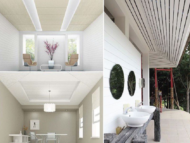 ฝ้าเพดานภายใน เลือกแบบไหนดี มีหลากวัสดุให้เลือกใช้ ที่นิยมกัน ได้แก่ ไม้ ซึ่งเหมาะกับพื้นที่เน้นความสวยงามโดยเฉพาะ แผ่นยิปซัม ซึ่งสามารถฉาบรอยต่อที่เรียบเนียน และไฟเบอร์ซีเมนต์ ซึ่งมีทั้งรูปแบบไม้เทียมและแบบแผ่น โดยเจ้าของบ้านสามารถเลือกใช้เป็นแนวทางในการสร้างสรรค์ไอเดียทำฝ้าแต่งบ้านที่เหมาะกับการใช้งานในขณะเดียวกัน