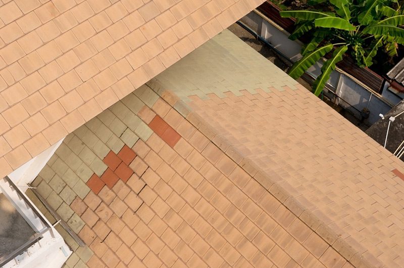ภาพรอยด่างของหลังคาสีไม่สม่ำเสมอ