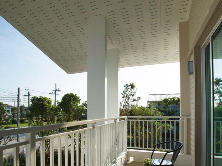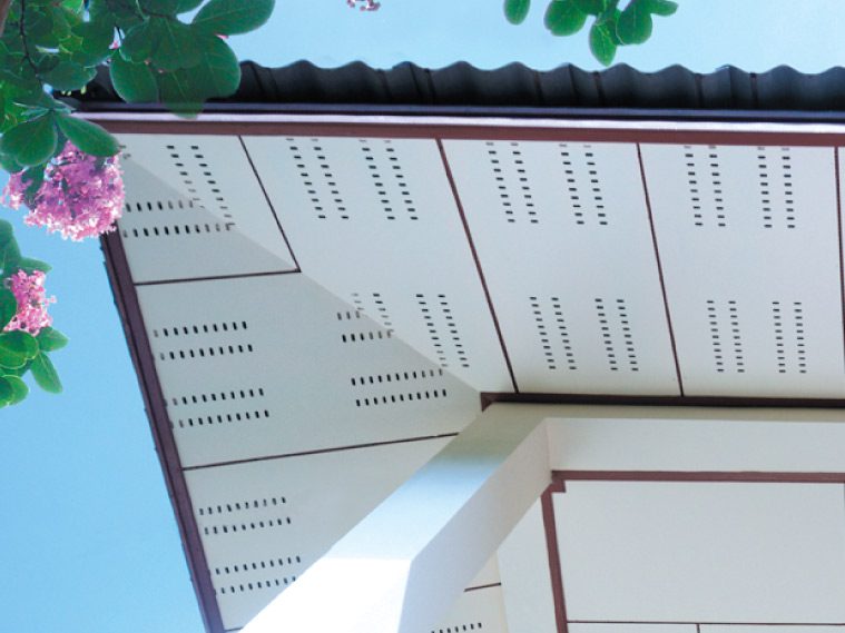 ภาพ: ฝ้าเพดานภายนอกแบบเซาะร่องพร้อมรูระบายอากาศ