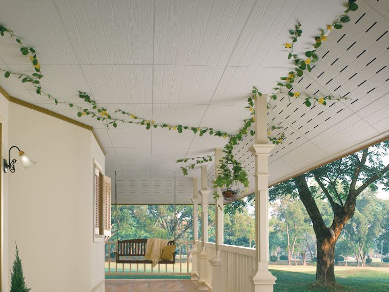 อาจอยู่ในรูปของฝ้าแผ่นเรียบพร้อมรูระบายอากาศแบบเต็มแผ่นหรือครึ่งแผ่น ฝ้าเซาะร่องที่ดูคล้ายระแนงไม้ (ทั้งแบบธรรมดาและแบบที่มีลวดลายไม้บนพื้นผิว) หรือจะใช้เทียมทำเป็นฝ้าไม้ระแนงตีเว้นร่องระบายอากาศก็ได้เช่นกัน โดยทั้งหมดนี้สามารถนำมาออกแบบสร้างลูกเล่นได้มากมาย
