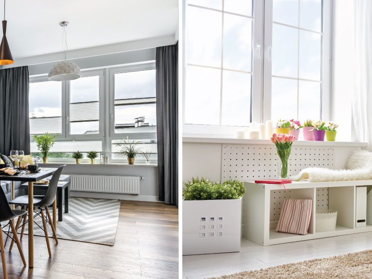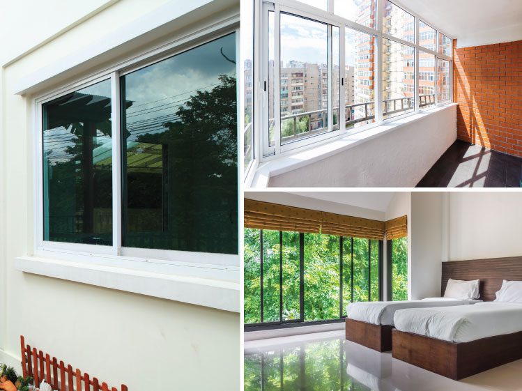- หน้าต่างบานเลื่อน คล้ายกับประตูบานเลื่อนที่ขณะเลื่อนเปิดจะได้ช่องลมลดลงเหลือครึ่งหนึ่ง มีข้อดีคือสามารถใช้ในบริเวณที่มีคนเดินผ่านไปมาได้ จึงใช้งานได้แทบทุกส่วนของบ้าน ไม่ว่าจะเป็น หน้าต่างที่เปิดรับบรรยากาศนอกบ้าน หรือใช้เป็นช่องส่งอาหารจากครัวมายังส่วนรับประทานอาหาร สิ่งสำคัญคือควรคำนึงเรื่องความปลอดภัยเป็นหลัก โดยเฉพาะหน้าต่างที่ติดกับภายนอกบ้านควรเลือกแบบที่มีตัวล็อคหรือระบบรักษาความปลอดภัยที่แน่นหนา