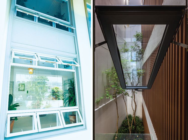 6. หน้าต่างบานเกล็ด หรือหน้าต่างแบบเกล็ดหมุน จะไม่กินพื้นที่ขณะเปิด ใช้สำหรับระบายอากาศ สามารถรับลมและแสงสว่างจากภายนอกเพียงแค่หมุนบานเกล็ดเท่านั้น ใช้ได้กับผนังที่ติดกับภายนอกอาคาร หรือผนังกั้นพื้นที่แต่ละส่วนภายในบ้านเพื่อการหมุนเวียนอากาศที่ดี แต่มีข้อควรคำนึงดังนี้
