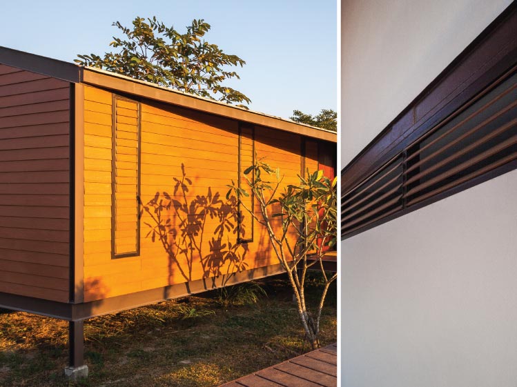 6.2. ความสามารถในการกันฝนของบานเกล็ดนั้นไม่ค่อยดีเพราะไม่มีบังใบ ขณะเปิดถ้าฝนสาดแรง น้ำฝนจะตีย้อนเข้ามาภายในบ้านได้ ซึ่งควรเตรียมรับมือหรือแก้โดยให้มีรอยซ้อนกันของเกล็ดให้มากๆ (ขณะฝนตกแนะนำให้ปิดบานเกล็ดให้สนิท)