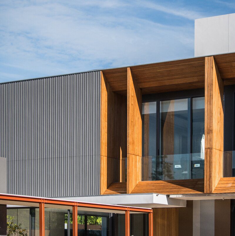 ตัวอย่างผนังสีเทาเข้มของบ้าน Infinity House หลังนี้ ออกแบบโดยสถาปนิก A49 โดยเลือกใช้ เอสซีจี เดคคอร์ รุ่น โมดิน่า ซึ่งมีการเว้นร่องขนาดที่แตกต่างกัน ผู้ใช้สามารถเลือกแพทเทิร์นได้ถึง 5 แบบ หรือนำแต่ละแบบมา mix เพื่อให้เกิดลวดลายที่แตกต่างได้ การติดตั้ง เอสซีจี เดคคอร์ รุ่น โมดิน่า จะติดตั้งบนโครงคร่าวเหล็กชุบสังกะสี ช่างสามารถติดตั้งง่ายด้วยการติดตั้งแบบระบบคลิปล็อค จึงมั่นใจได้ว่าแพทเทิร์นลายผนัง จะเรียงเส้นสายเรียบเสมอกันอย่างสวยงาม