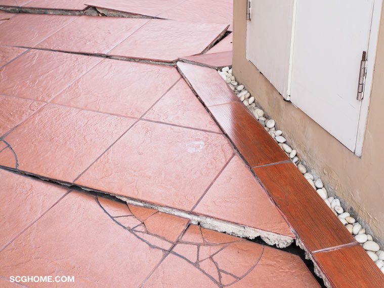 แก้ปัญหาพื้นโรงรถทรุดแตกร้าว กรณีพื้นรอบบ้านทรุดในอัตราที่รวดเร็ว