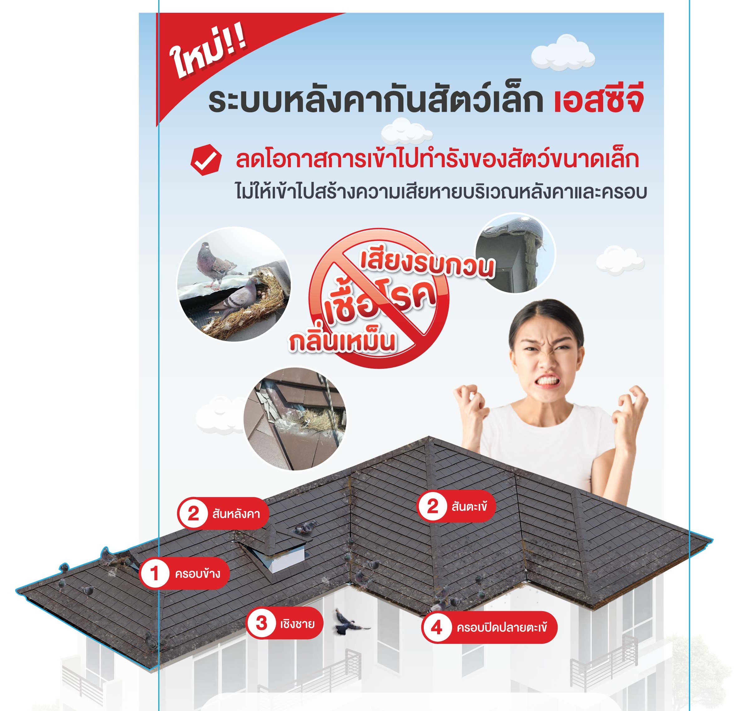 บริการติดตั้งอุปกรณ์กันสัตว์เล็ก บริเวณหลังคาและครอบ ช่วยลดโอกาสการเข้าไปทำรังของสัตว์เล็กบริเวณหลังคาบ้าน ตัดปัญหาที่สร้างความรำคาญ และแหล่งสะสมของเชื้อโรคให้กับเจ้าของบ้าน โดยทีมงานมืออาชีพจาก SCG และอุปกรณ์กันสัตว์เล็ก SCG ที่ออกแบบและพัฒนามาเพื่อลดปัญหาการเข้าไปทำรังของสัตว์เล็กโดยเฉพาะ