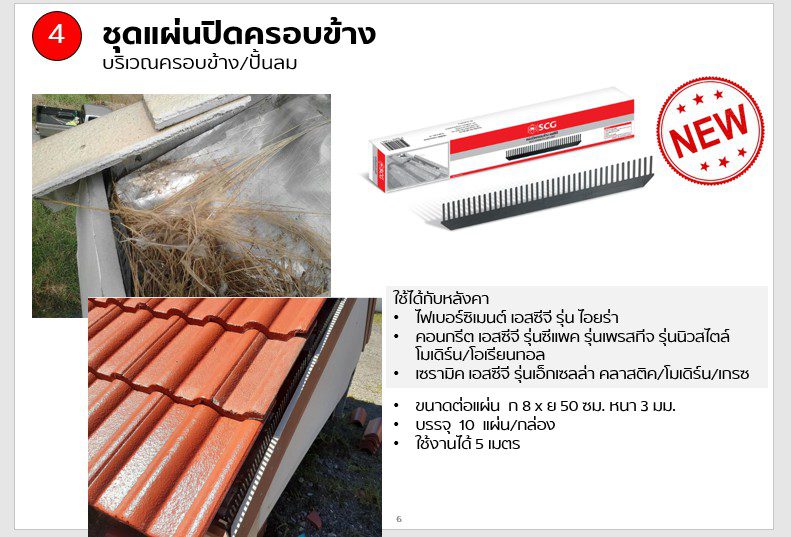 - แผ่นปิดครอบข้าง เอสซีจี SCG VERGE FILLER UNIT ใช้ปิดช่องว่างระหว่างแนวครอบปั้นลมและกระเบื้องหลังคา