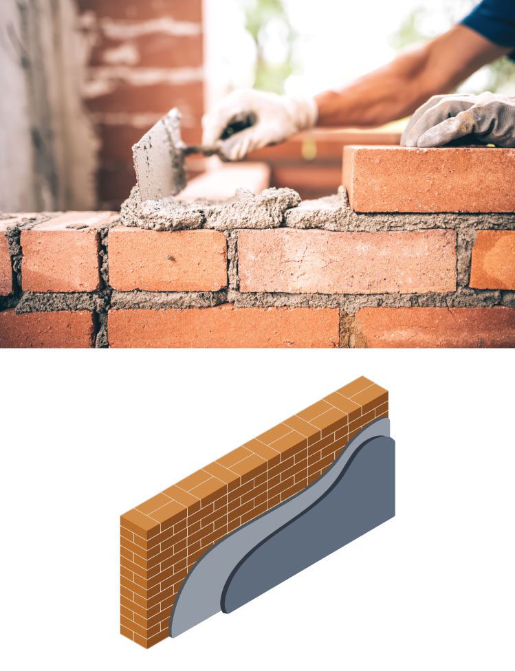 2. เพิ่มความหนาผนัง โดยการก่ออิฐแบบเต็มแผ่น หรือ การก่ออิฐสองชั้นแบบเว้นช่องว่างระหว่างผนังเพื่อลดการส่งผ่านของเสียง ซึ่งหากมีการติดตั้งฉนวนกันเสียงเข้าไปที่ช่องว่างระหว่างผนังนี้ด้วย จะยิ่งช่วยกันเสียงได้มากยิ่งขึ้น