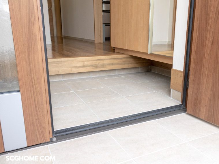 ระหว่างภายนอกกับภายในควรต่างระดับกัน และประตูควรเปิดจากภายในสู่ภายนอกบ้าน เพื่อป้องกันน้ำจากฝนที่ไหลเข้ามาภายในบ้าน รวมถึงป้องกันแมลงและสัตว์ต่าง ๆ