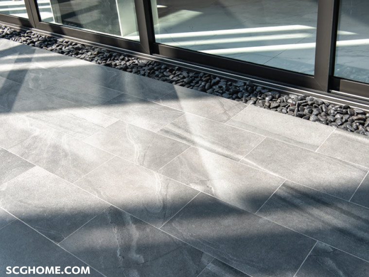 อีกทางเลือกคือ ใช้บล็อกปูพื้นหรือกระเบื้องคอนกรีตทดแทนพื้นคอนกรีต ข้อดีคือ ตัดปัญหาพื้นทรุดกระเบื้องแตกออกไป เพราะหากเกิดการทรุดตัวเพิ่มเติมอีก ก็สามารถรื้อบล็อกหรือกระเบื้องคอนกรีตขึ้นมาทำการปรับระดับและติดตั้งใหม่ได้อย่างง่ายดายและประหยัด ยิ่งปัจจุบันมีหลายหลากรูปแบบและสีสันให้เลือกใช้ ตอบโจทย์เจ้าของบ้านได้มากขึ้น