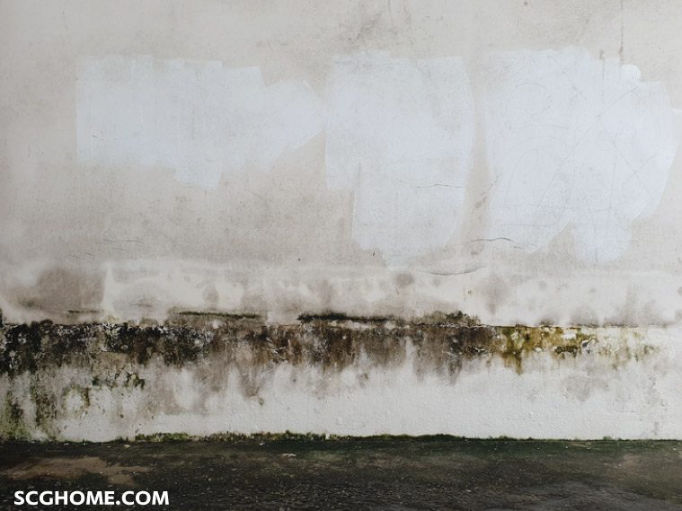 เป็นปัญหาที่เกิดจากความชื้นสะสมบริเวณผนังและอาจเป็นสัญญาณว่าสีทาผนังอาจมีการเสื่อมสภาพ หรือมีรอยร้าวบริเวณผนังจนทำให้ความชื้นจากภายนอกเข้ามาได้ง่าย ส่วนใหญ่แล้วปัญหาผนังชื้นมักเกิดขึ้นบริเวณผนังชั้นล่าง สูงจากพื้นประมาณไม่เกิน 1 เมตร