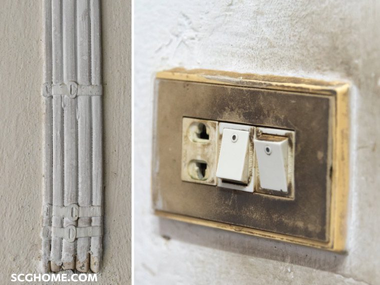 ควรตรวจสอบอุปกรณ์ไฟฟ้า เต้ารับ เต้าเสียบ สายไฟ สวิตซ์ไฟ ว่ายังสามารถใช้งานได้ดีหรือไม่ หากพบว่ามีการฉีกขาดหรือผิดปกติในบริเวณใดควรรีบแก้ไขโดยผู้เชี่ยวชาญ เพราะอาจส่งผลต่อชีวิตและทรัพย์สินได้ โดยเฉพาะสายไฟที่เดินลอยมักเสื่อมง่ายกว่าสายไฟที่เดินในท่อร้อยสายไฟ