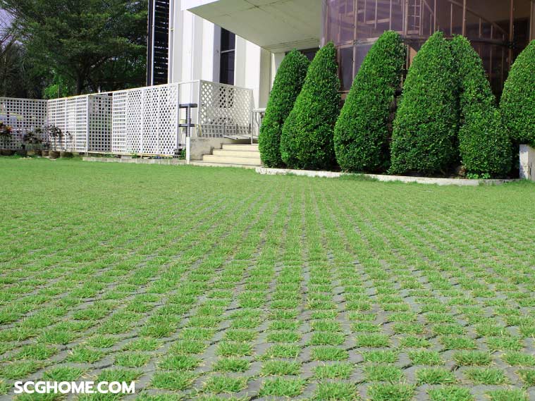 หากชอบความแข็งแกร่งและดูแลรักษาง่ายของบล็อกปูพื้นซึ่งเป็นวัสดุคอนกรีต แต่ก็ขณะเดียวกันก็ต้องการพื้นที่สีเขียวเพื่อให้ดูสดชื่นและไม่ร้อนจนเกินไป การเลือกใช้บล็อกปูหญ้าดูจะเป็นทางเลือกที่ตอบโจทย์ทั้งสองส่วนได้เป็นอย่างดี