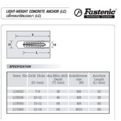 เครื่องมือช่างพุกอิฐมวลเบา FASTENIC รุ่น LC-6032 ขนาด 8.0×32 มม. 3.00฿ ให้คะแนน 5.00 ตั้งแต่ 1-5 คะแนน ดูสินค้า