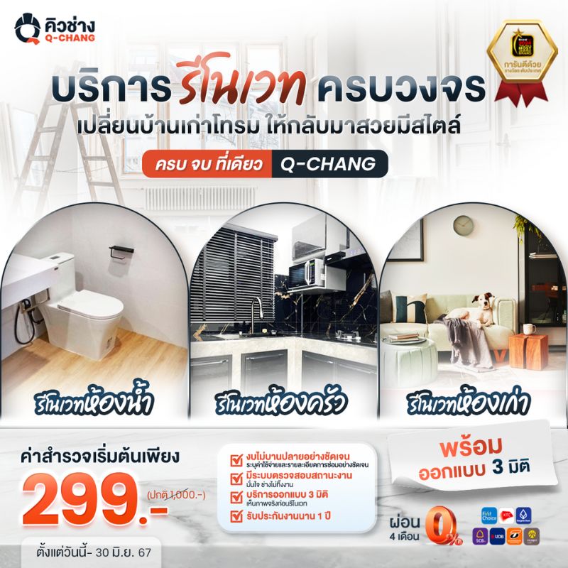 พิเศษค่าสำรวจ ลดเหลือ 299.- จากปกติ 1,000.- ปรับปรุงห้องเก่า ให้เป็นห้องใหม่ ห้องครัว ห้องน้ำ ปรับปรุงห้องพัก สวย ดูมีสไตล์ ออกแบบ 3D Design ให้เห็นภาพเสมือน