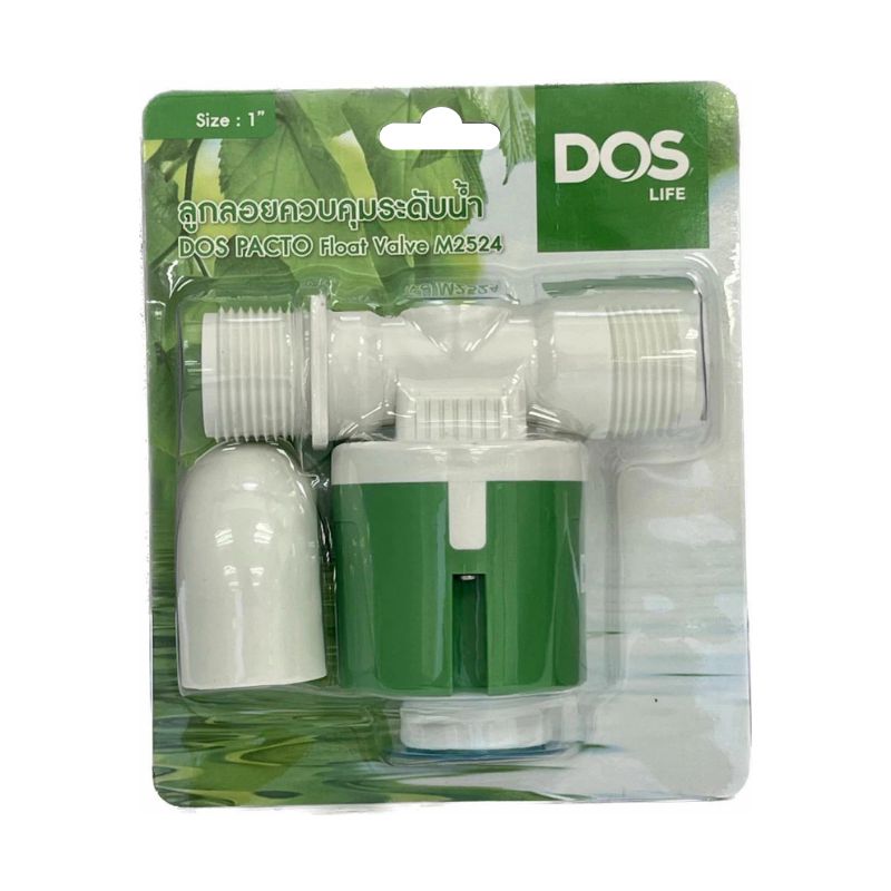 ลูกลอยควบคุมระดับน้ำอัตโนมัติ DOS รุ่น PACTO M2524 ขนาด 1 นิ้ว สีเขียว เป็นอุปกรณ์ที่ใช้สำหรับควบคุมระดับน้ำในถังเก็บน้ำหรือแทงก์น้ำอย่างอัตโนมัติ โดยจะตัดและจ่ายน้ำตามระดับน้ำที่ตั้งไว้ ช่วยประหยัดน้ำ