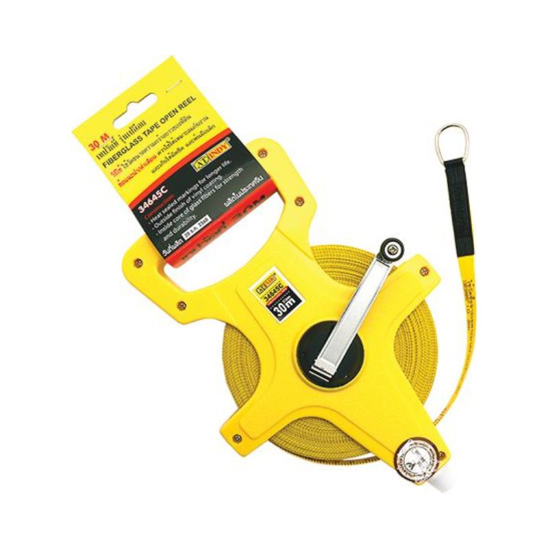 เทปวัดที่ เปลื่อย AT INDY รุ่น 34646C สีเหลือง ยาว 50 เมตร สายเทปทำจากไฟเบอร์กลาส (Fiberglass) คุณภาพสูง มีความยืดหยุ่น ทนต่อการขูดขีด และกันน้ำ พิมพ์ตัวเลขและหน่วยวัดอย่างชัดเจนทั้ง เซนติเมตร และ เมตร ดีไซน์เปลือย โครงสร้างเปลือยน้ำหนักเบา ช่วยให้สายเทปไม่พันกัน