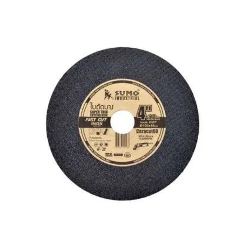 ใบตัด Fast Cut SUMO สีดำ ขนาด 4 นิ้ว เป็นใบตัดที่ออกแบบมาเพื่อใช้ในการตัดโลหะทั่วไป เช่น เหล็ก สเตนเลส และวัสดุแข็งอื่น ๆ ด้วยประสิทธิภาพที่สูง ตัดได้รวดเร็วและแม่นยำ ผลิตจากวัสดุคุณภาพดีที่ช่วยยืดอายุการใช้งาน ทำให้ใบตัดมีความทนทานและใช้งานได้หลากหลาย ผลิตจากวัสดุที่มีความแข็งแรงและทนทานต่อการเสียดสีสูง ช่วยให้การตัดเป็นไปอย่างราบรื่นและแม่นยำ มีการออกแบบที่ดูสวยงามและแสดงถึงการใช้งานกับโลหะที่ต้องการความแข็งแรง เหมาะสำหรับเครื่องมือขนาดเล็กและการใช้งานทั่วไปในบ้านหรืออุตสาหกรรมเบา สามารถตัดโลหะได้อย่างรวดเร็วและมีความแม่นยำ ใบตัดมีความคงทน ใช้งานได้นาน ไม่แตกหักง่ายเมื่อใช้ถูกวิธี