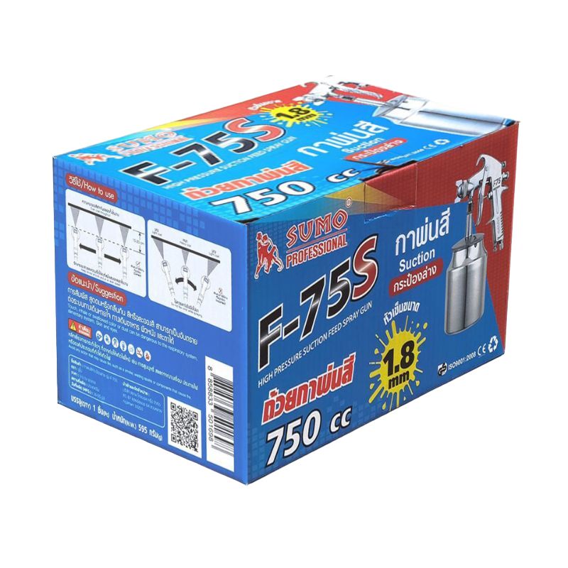 กาพ่นสีบน SUMO F-75S 750 ซีซี คุณภาพมาตรฐานผลิตจากวัสดุอะลูมิเนียม ทนทานต่อการกัดกร่อน สามารถใช้งานร่วมกับของเหลว, สีน้ำ, สีอะคริลิก, แล็กเกอร์ หรือสารเคมี พ่นสีได้อย่างแม่นยำ ควบคุมทิศทางได้ง่าย เก็บงานเรียบเนียน ไม่หยดย้อย หัวพ่นสีขนาด 1.8 มม. พ่นสีได้อย่างแม่นยำ ช่วยให้งานเสร็จอย่างรวดเร็ว ด้ามจับออกแบบตามหลักสรีระ ทำให้จับง่ายถนัดกระชับมือ ผ่านระบบการผลิตที่ได้รับมาตรฐาน ใช้งานได้อย่างมั่นใจ