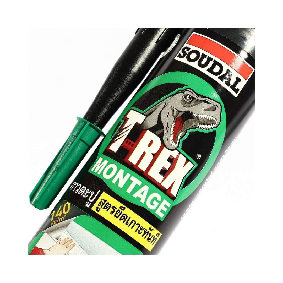 กาวตะปูซูดัล SOUDAL ที-เร็กซ์ มอนเทจ ซูเปอร์ (T-Rex Montage Super) 350g กาวตะปูสูตรน้ำ กำลังรับแรงสูง มีส่วนผสมของไฟเบอร์ ยึดเกาะได้หลากหลายวัสดุ และยึดเกาะได้ทันที (ขณะยังไม่แห้งสนิท) โดยไม่ต้องมีวัสดุค้ำยัน
