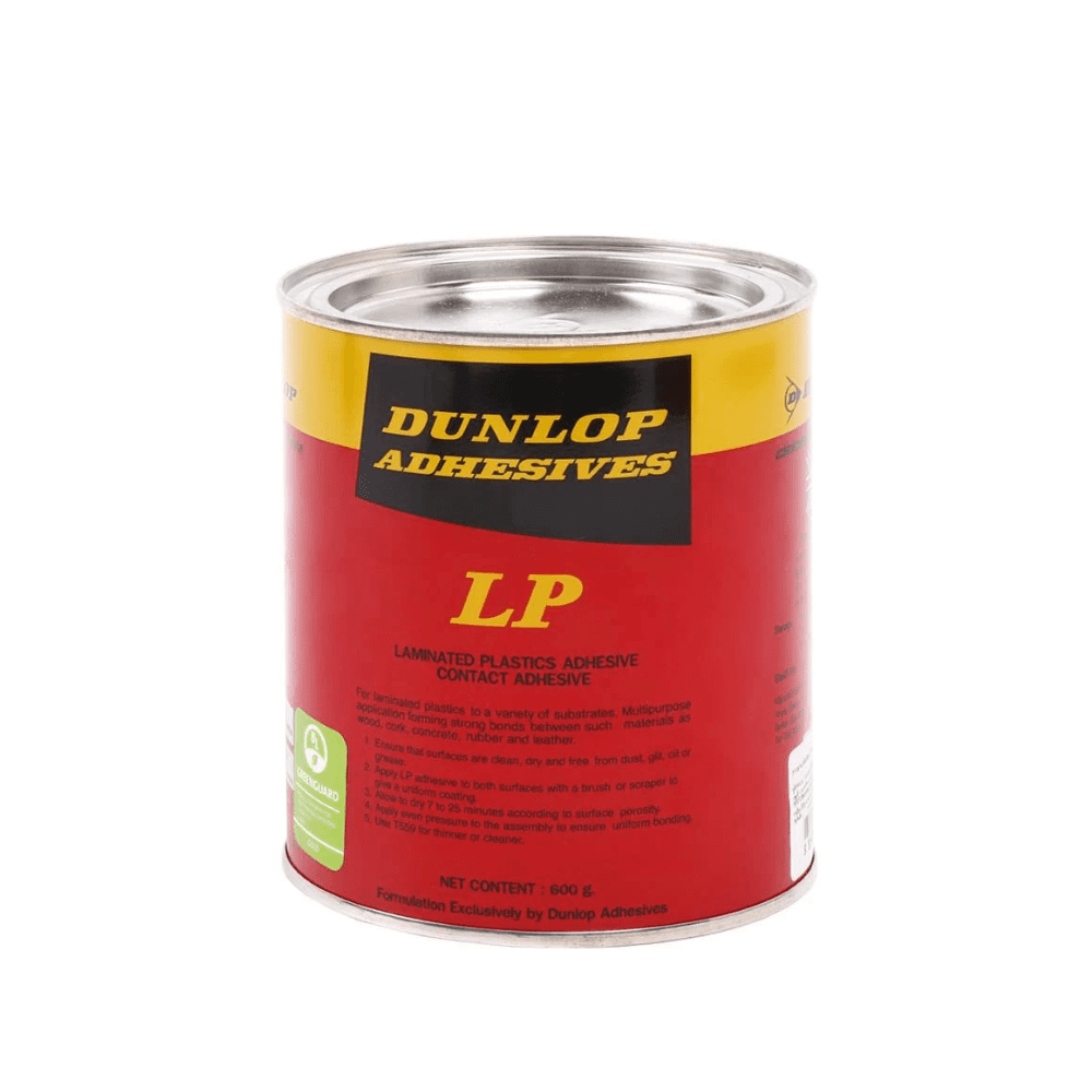 กาวยางดันลอป DUNLOP รุ่น LP ผลิตจาก ยางสังเคราะห์ (Synthetic Rubber) เป็นส่วนประกอบหลัก ซึ่งนิยมใช้ในอุตสาหกรรมกาวเนื่องจากให้ความยืดหยุ่นและแรงยึดเกาะที่ดีเยี่ยม นอกจากนี้ยังมีส่วนผสมของ สารทำละลายอินทรีย์ (Organic Solvents) เช่น โทลูอีน (Toluene) หรือสารในกลุ่มคีโตน/อะโรมาติกไฮโดรคาร์บอน เพื่อให้กาวอยู่ในสถานะของเหลวที่สามารถทาได้ และ สารเติมแต่ง (Additives) อื่นๆ เพื่อปรับปรุงคุณสมบัติการแห้งตัว ความหนืด ความทนทานต่อความร้อน/น้ำ และการยึดเกาะ.