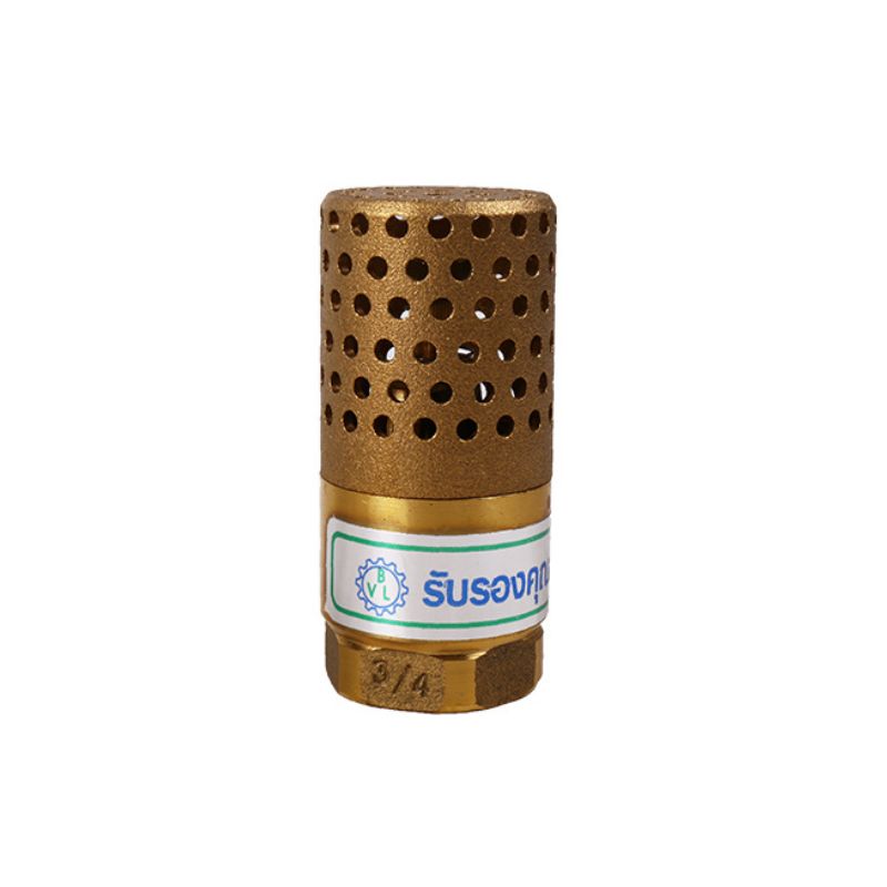 ฟุตวาล์วสปริง BVL รังผึ้ง ขนาด 3/4 นิ้ว Spring Foot Valve with Honeycomb Design, 3/4 Inch เป็นอุปกรณ์ที่ใช้ในระบบน้ำและปั๊มน้ำ มีการออกแบบเพื่อป้องกันการไหลย้อนกลับของน้ำ ทำจากวัสดุที่ทนทานต่อการกัดกร่อน ผลิตจากทองเหลือง ป้องกันการไหลย้อน