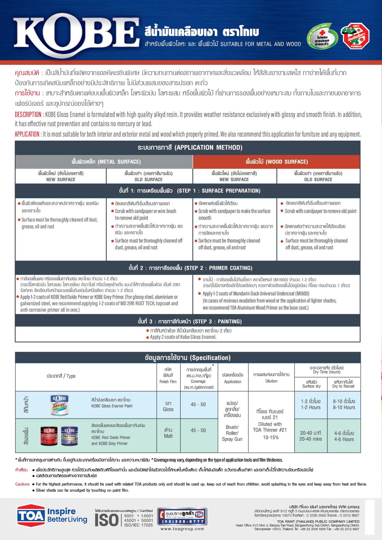 - ทาเรียบ ฟิล์มสีไม่กรอบล่อน และยึดเกาะพื้นผิวได้ดี