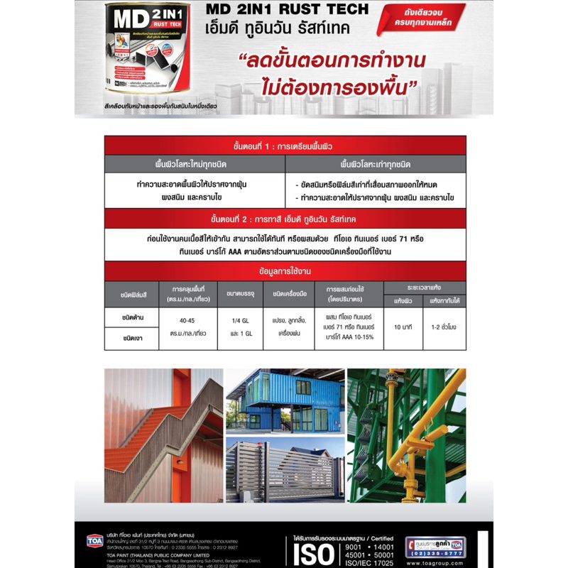 สีเคลือบเงากันสนิม TOA รุ่น เอ็มดี 2IN1 MG999 รัสท์เทค ขนาด 1/4 แกลลอน สีดำเงา