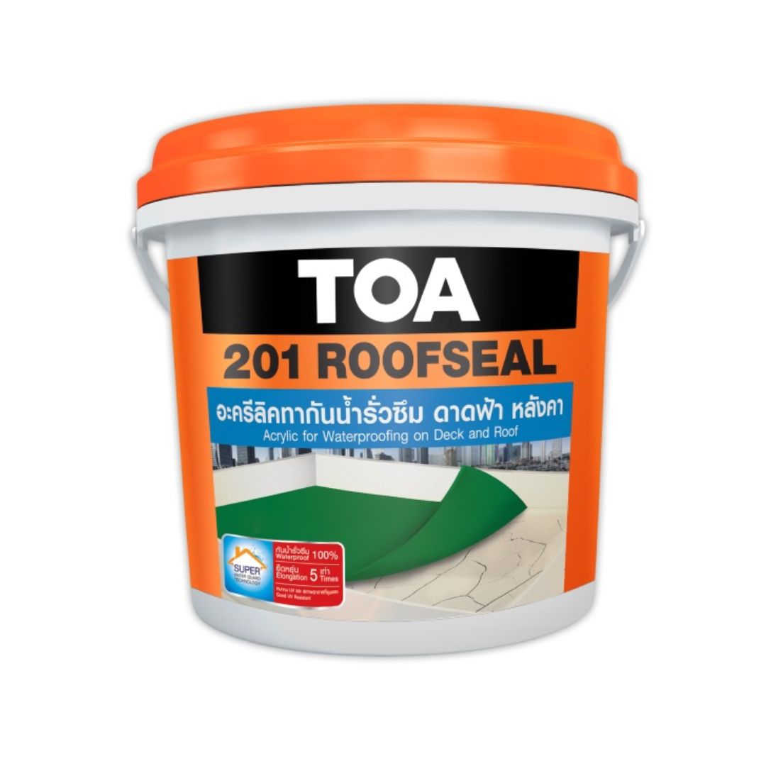อะคริลิกกันซึม TOA 201 Roofseal สีเทา เป็นผลิตภัณฑ์อะคริลิกกันซึมคุณภาพสูง ชนิดยืดหยุ่นพิเศษ ใช้สำหรับทากันซึมบริเวณดาดฟ้า หลังคา ระเบียงกันสาด หรือผนังอาคาร ช่วยป้องกันปัญหาน้ำรั่วซึมได้อย่างมีประสิทธิภาพ ทนทานต่อการเปลี่ยนแปลงอุณหภูมิได้ดีเยี่ยม ไม่แตกร้าวง่าย ยึดเกาะกับพื้นผิวได้ดีเยี่ยม สามารถปกปิดรอยแตกลายงาขนาดเล็กได้ และยังสะท้อนความร้อนได้บางส่วน ช่วยลดอุณหภูมิภายในอาคาร