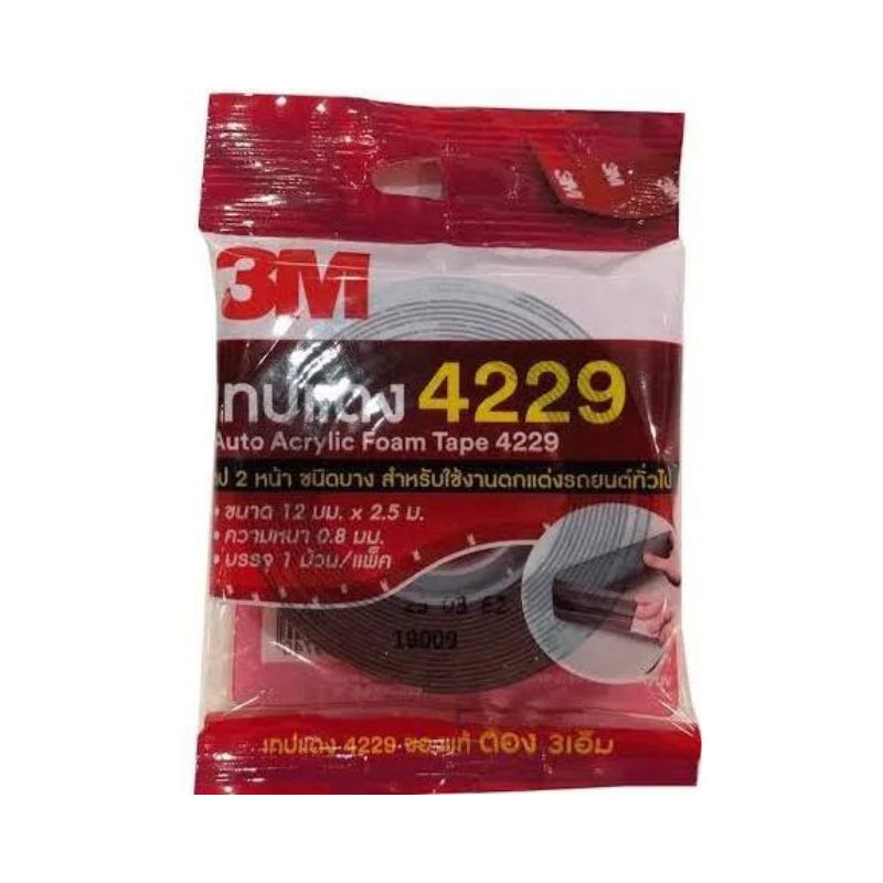 อะคริลิกโฟมเทปกาวยึดติดคุณภาพสูงสำหรับทั้งชิ้นส่วนภายในและภายนอกรถยนต์ทุกชนิด รวมถึง คิ้วด้านข้างประตูรถ แผงแสตนเลสสำหรับตกแต่งภายนอก Cladding คิ้วขอบหน้าต่าง แผงกันแมลง ชิ้นงานตกแต่งภายใน และชุดแต่งเกือบทุกชนิด เทปกาวสองหน้าประกอบไปด้วยกาวอะคริลิกคุณภาพสูงซึ่งโฟมมีคุณสมบัติในการไหล ตัวและมีความยืดหยุ่น ให้แรงยึดติดเบื้องต้นสูง และแรงยึดติดจะเพิ่มขึ้นเมื่อเวลาผ่านไป สามารถกระจายแรงที่มากระทำต่อชิ้นงานได้ 3M อะคริลิกโฟมเทป 4229 ได้มีการใช้งานทั่วโลกทั้งจากผู้ผลิตยานยนต์และในตลาดชุดตกแต่งหลังการขาย และได้ผ่านการรับรองมาตรฐาน QS9000