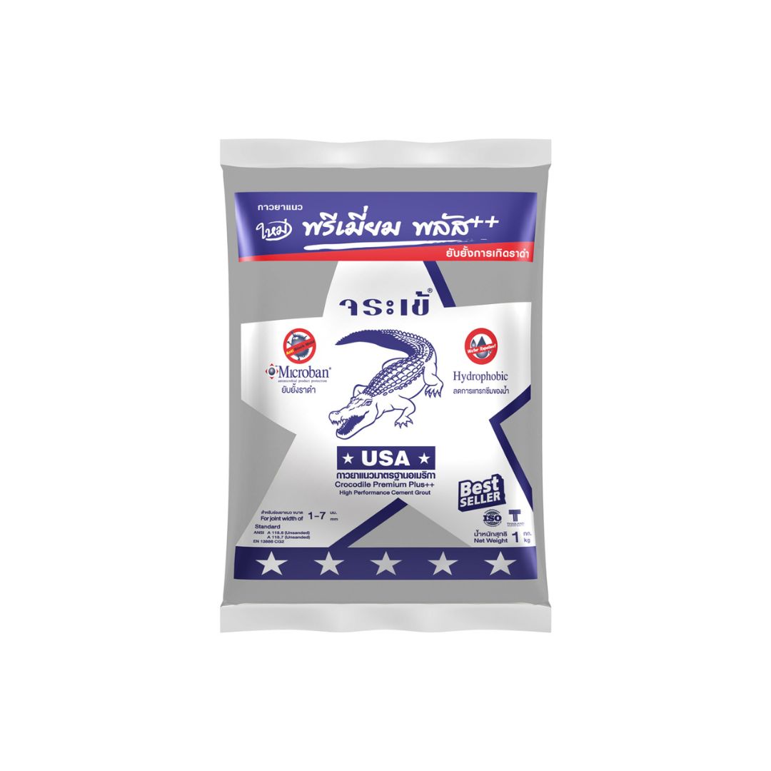 Crocodile Silver Premium Plus สำหรับกระเบื้องทั่วไปที่ยับยั้งราดำ ช่วยลดการสะสมของคราบสกปรกฝังแน่นด้วยสารไฮโดรโฟบิก และยึดเกาะสูง ไม่หลุดล่อน ไม่หดตัวด้วยกาวลาเท็กซ์โพลิเมอร์ มีอายุการใช้งานยาวนาน สีสันหลากหลาย เข้ากับกระเบื้องทุกสไตล์ เหมาะสำหรับบริเวณที่มีเชื้อโรคสะสม ภายในและภายนอกอาคาร