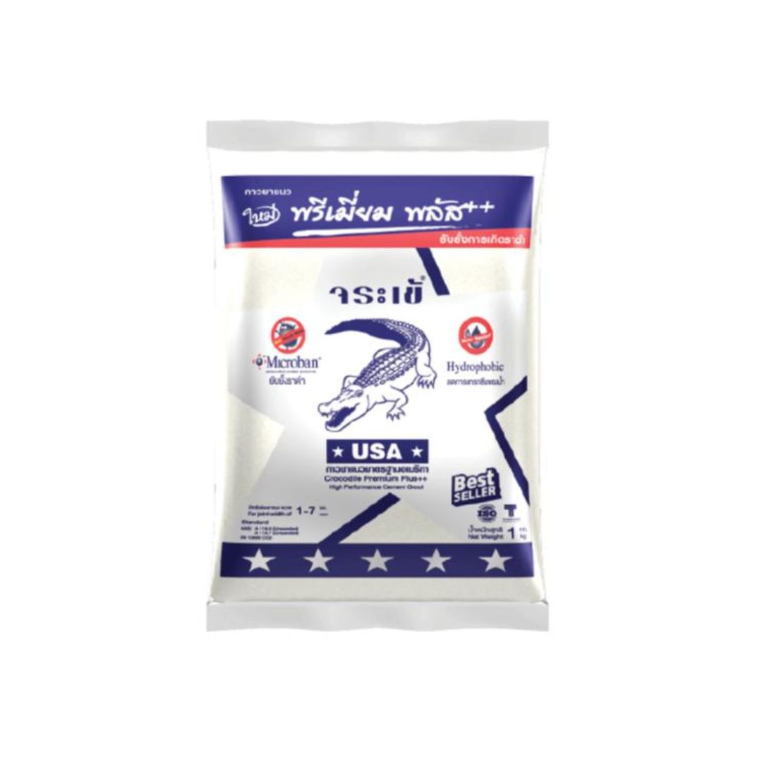 Crocodile กาวยาแนว จระเข้ รุ่นพรีเมียมพลัส 0721 สีครีมงาช้าง ขนาด 1 กก. Crocodile Silver Premium Plus สำหรับกระเบื้องทั่วไปที่ยับยั้งราดำ ช่วยลดการสะสมของคราบสกปรกฝังแน่นด้วยสารไฮโดรโฟบิก และยึดเกาะสูง ไม่หลุดล่อน