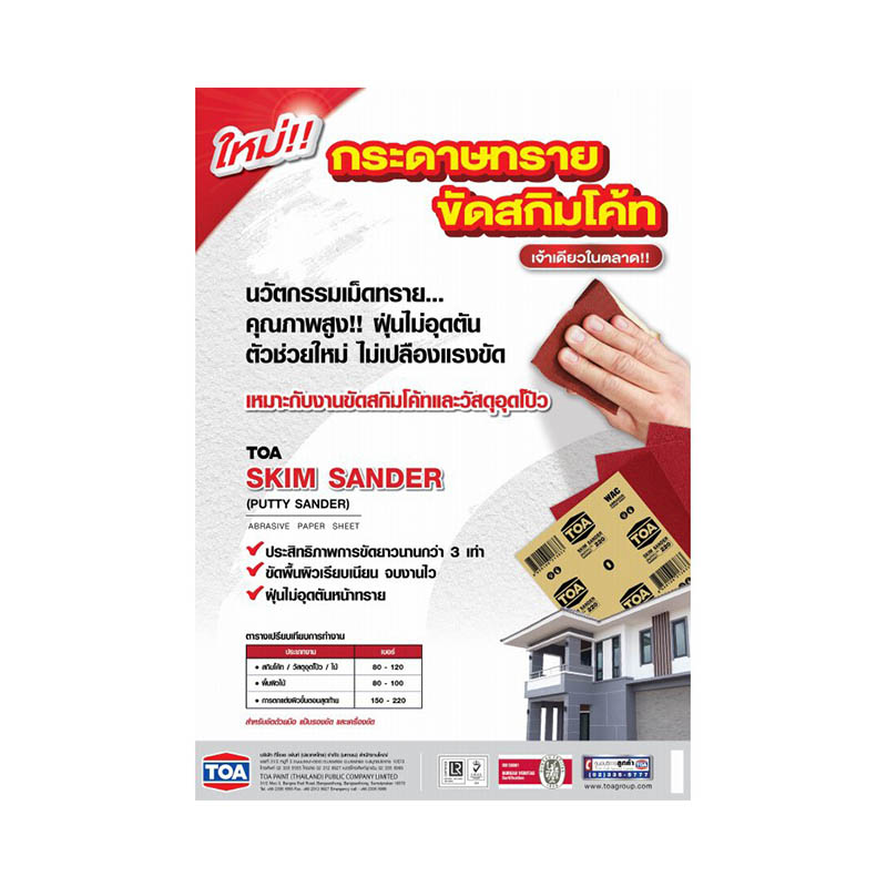กระดาษทรายขัดสกิมโค้ท มีประสิทธิภาพการขัดยาวนานกว่า 3 เท่า ขัดพื้นผิวเรียบเนียน จบงานไว และ ฝุ่นไม่อุดตันหน้าทราย เหมาะกับงานขัดสกิมโค้ทและวัสดุอุดโป๊ว ตัวช่วยใหม่ ไม่เปลืองแรงขัด ประสิทธิภาพการขัดนานกว่า 3 เท่า